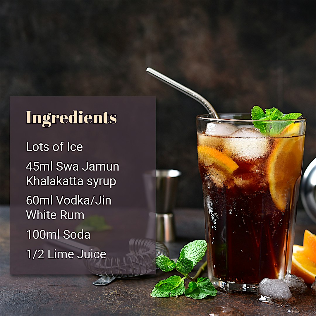 You can do a classic Swa Jamun Kala Khatta & Tonic with some vodka, tonic, lime juice, ice and syrup! Add a dash of this Swa Jamun Kala Khatta to your tea to spice it up! Make Mojitos, Margaritas, Lemonades, Martinis & so much more! Only with Swa Artisanal Syrups!.
